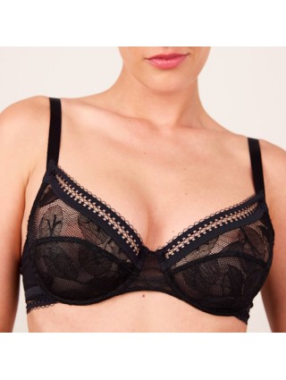 Soutien-gorge à armature avec une dentelle florale française ainsi qu'un dos en microfibre.
