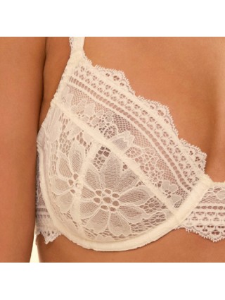 Soutien-gorge semi corbeille en broderie anglaise ivoire modèle Freesia de la marque Simone Pérèle.