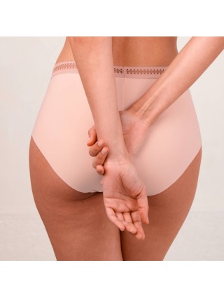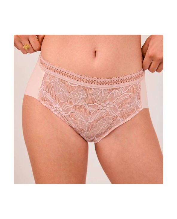Culotte en dentelle élastiquée et dos lycra découpe laser (invisible sous les pantalons) vieux rose modèle Cercle songe de la marque Maison Lejaby.