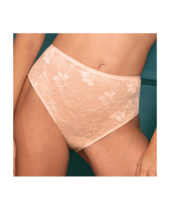 Culotte haute en dentelle élastiquée de couleur peau rosée modèle Fleur du jour de la marque Antigel.