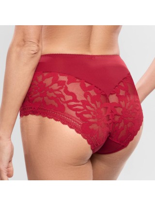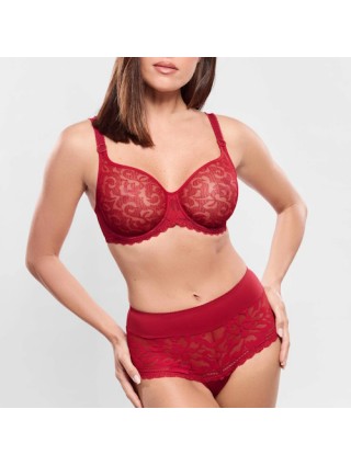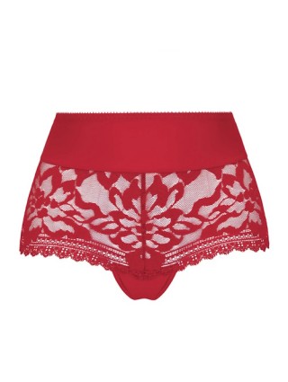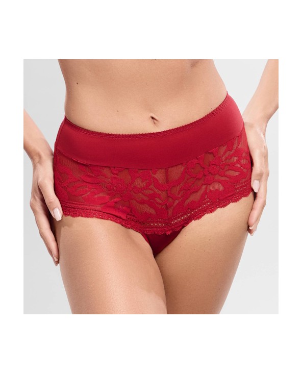 Culotte haute de couleur rouge qui est invisible sous le blanc. Fabriqué avec une dentelle française et une maille belge elle vous garantie confort et élégance. C'est le modèle Leia de la marque Empreinte.