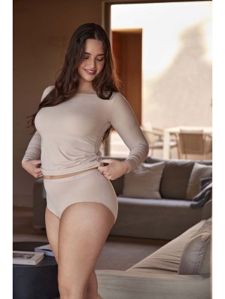 Culotte en microfibre avec un fond en coton éponge et une découpe laser qui ne marque pas sous les vêtements.