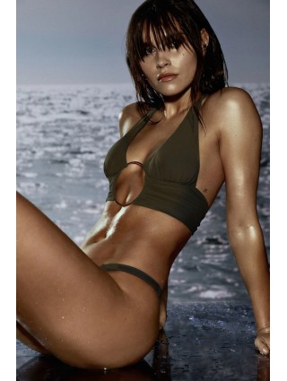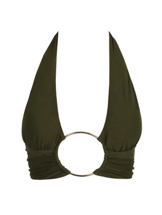Maillot de bain vert olive avec un anneau sur le milieu du modèle Lita de la marque Sarda.
