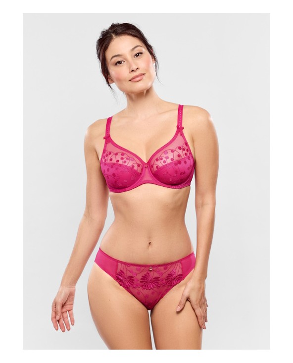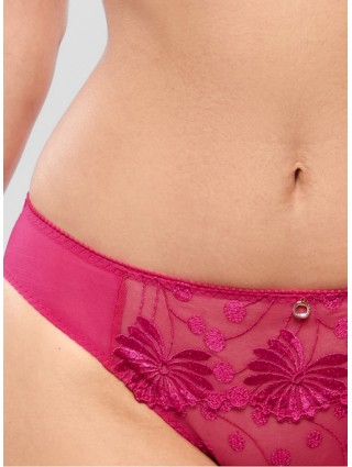 Slip avec un dos en maille et un devant orné d'une bande de broderie florale. Modèle Tess de la marque Empreinte.