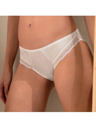 Très jolie slip charme Ivoire avec des effets satines et des éclats de strass cristal. Le modèle c'est Résille Bohème de la marque Antigel
