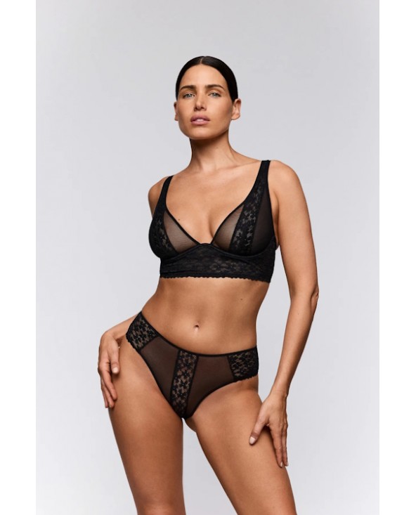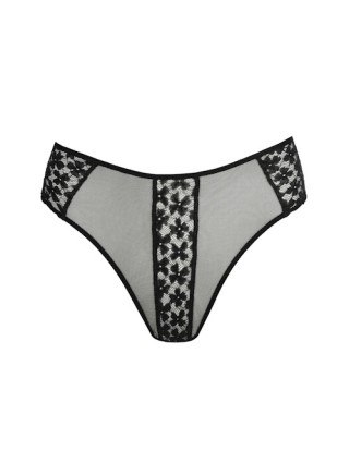 Une élégante dentelle, c'est sur ce slip que vous allez la retrouver ! Faite en tulle noir élastiqué avec sur le devant,le dos et sur les côté une dentelle fleurie de couleur noir. C'est le modèle Ariane de la marque Andres Sarda.